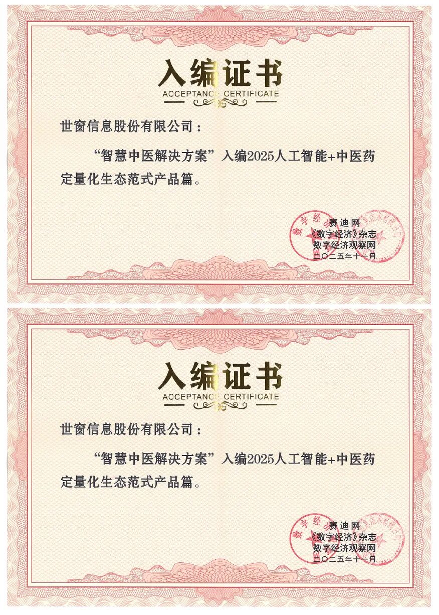 论坛上,赛迪网数字人“小迪”发布了《“AI中国”生态范式集(2025)》和《“AI中国”生态图谱(2025)》两项重要成果。世窗信息成功入编《“AI中国”生态范式集(2025)》企业篇,公司旗下产品“智慧中医解决方案”成功入编《“AI中国”生态范式集(2025)》产品篇。
